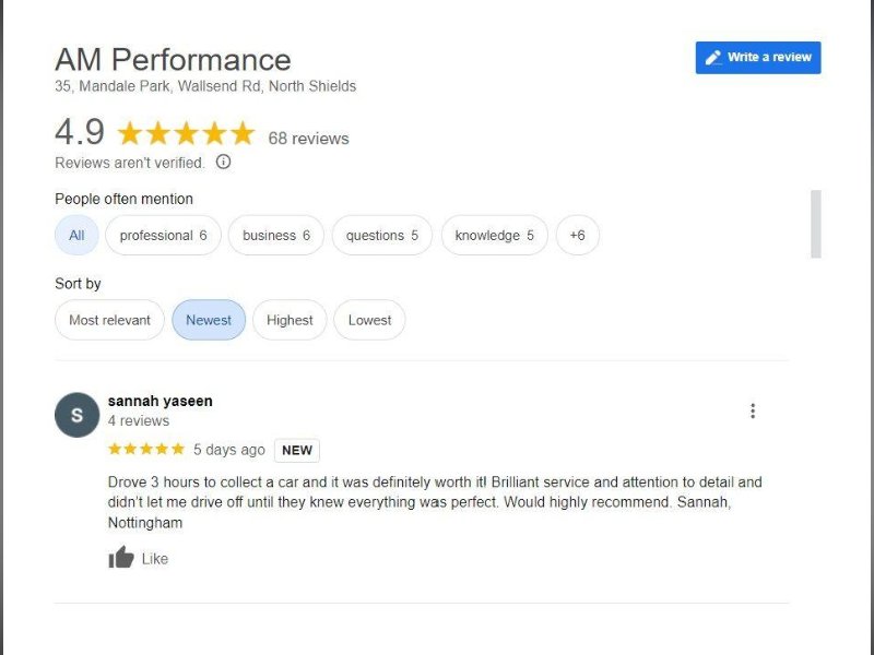 Bringing the trend of shopping local to the Motor Trade AM Performance is small, privately owned and family run business with years of motor trade experience where you can buy with confidence. We are an AA and trading standards approved dealer meaning all vehicles come with 3 Months Warranty, 12 Months breakdown cover and optional 5 day driveaway insurance. We are also proud to boast the highest google review score of any car dealership in our local area! please take a look for yourself.